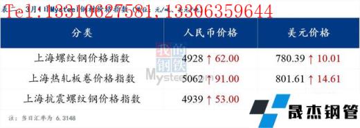 免責聲明:本網站(山東聊城晟杰無縫鋼管廠www.aremjf.cn)刊載的“2022年03月01日日報:鋼材_無縫鋼管價格指數(shù)上漲42.54元/噸”等均源于網絡,版權歸原作者所有,且僅代表原作者觀點,本文所載信息僅供參考。轉載僅為學習與交流之目的,如無意中侵犯您的合法權益,請及時聯(lián)系刪除。本網站刊登此篇文章并不意味著本站贊同其觀點或證實其內容的真實性,我們不對其科學性、嚴肅性等作任何形式的保證。如果侵犯了您的版權,請盡快聯(lián)系我們予以撤銷,謝謝合作!