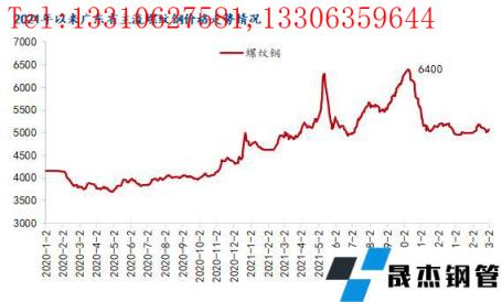 回顧價(jià)格方面,截止2月28日,廣州市場(chǎng)主流螺紋鋼銷售價(jià)格5030元/噸,較1月底(5000元/噸)上漲30元/噸,漲幅為0.6%,由于2月份整體市場(chǎng)表現(xiàn)為沖高回落,目前現(xiàn)貨價(jià)格已經(jīng)回歸到春節(jié)水平。2月份以來,在春節(jié)因素下,上旬價(jià)格基本平穩(wěn);節(jié)后開市在宏觀數(shù)據(jù)利好、無(wú)縫厚壁鋼管廠家助推以及限產(chǎn)預(yù)期下,市場(chǎng)迎來開門紅行情,隨后在原料強(qiáng)調(diào)控下,價(jià)格沖高回落。一方面,鐵礦石及雙焦持續(xù)受政策性調(diào)控,制約成材價(jià)格反彈空間;另一方面,國(guó)際形勢(shì)緊張疊加疫情反復(fù)以及需求釋放預(yù)期落空導(dǎo)致價(jià)格進(jìn)一步回落。節(jié)后市場(chǎng)走勢(shì)基本上把慣性拉漲過后的疲軟表現(xiàn)的淋漓盡致。短期來看,目前價(jià)格回到節(jié)前水平,但節(jié)前有備貨的商家基本上落袋為安,節(jié)前低價(jià)資源逐漸售空,短期貿(mào)易商現(xiàn)貨成本偏高,對(duì)價(jià)格有一定支撐。
