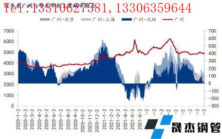 從區(qū)域價(jià)差來看,進(jìn)入2月份以來,南北價(jià)差整體呈現(xiàn)維持的狀態(tài),這與近年來數(shù)據(jù)基本一致,一方面2021年底,南北價(jià)差整體不如往年,北材南下均有減量,到貨延期的情況。截至2月28日廣州(剔除磅差)與北京、上海及沈陽(yáng)地區(qū)螺紋鋼價(jià)差分別為100、30及30元/噸,較北京及沈陽(yáng)分別縮小40、10元/噸左右,與上??s小90元/噸。進(jìn)入3月份,由于冬奧會(huì)結(jié)束,北方地區(qū)限產(chǎn)逐漸解除,之前受此影響的無(wú)縫厚壁鋼管廠家產(chǎn)量或有回升,不過由于兩會(huì)即將召開,產(chǎn)量回升或有限;與此同時(shí),歷年以來,南方地區(qū)整體需求啟動(dòng)要快于往年。同時(shí)由于南北價(jià)差偏小,未來北方材發(fā)貨量以及到貨量也將逐步減少,南北價(jià)差可能會(huì)被重新拉開。按照往年的數(shù)據(jù)來看,南北價(jià)差呈現(xiàn)“秋冬大,春夏小”的特點(diǎn),隨著發(fā)運(yùn)量及到貨量的減少,進(jìn)入二季度南北價(jià)差或?qū)⒅饾u回歸。