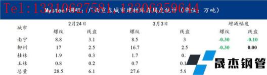 本周廣西地區(qū)螺紋資源社會(huì)庫(kù)存整體下降,商家出貨好轉(zhuǎn)。進(jìn)入3月,厚壁無(wú)縫鋼管原料消息面有所放寬,需求復(fù)蘇,整個(gè)黑色系期貨近期首次出現(xiàn)全面大幅拉漲,市場(chǎng)看漲氛圍濃厚,給予市場(chǎng)較大的操作空間。同時(shí),在期貨的刺激下廣西本地需求進(jìn)一步釋放,周二商家迎來(lái)了出貨拐點(diǎn),當(dāng)天成交爆發(fā)式增長(zhǎng),為后續(xù)成交奠定基礎(chǔ)。從資源分配來(lái)看,南寧區(qū)域由于部分商家的資源從廠里直發(fā)進(jìn)入工地,進(jìn)入倉(cāng)庫(kù)資源相對(duì)有限,因而南寧庫(kù)存出現(xiàn)小幅度下降。同時(shí),柳鋼本部生產(chǎn)飽和度較低,廣西投放資源有限,柳州社會(huì)庫(kù)存也出現(xiàn)不增反降局面。價(jià)格方面,無(wú)縫厚壁鋼管廠家出廠價(jià)推漲及時(shí),本周截至周四廣西推漲90元/噸,但從周邊市場(chǎng)來(lái)看,廣西價(jià)格處于低位,周邊資源流入利潤(rùn)空間較少,整體流入量有所下降。截至目前,廣西市場(chǎng)庫(kù)存建筑厚壁無(wú)縫鋼管33.58萬(wàn)噸,較上周相比減少1.02萬(wàn)噸。