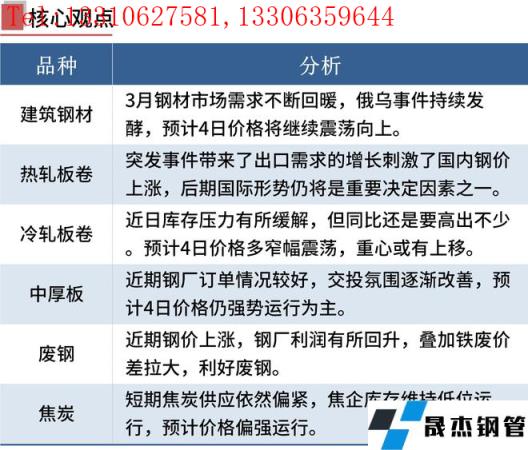建筑厚壁無縫鋼管:3月3日,全國31個主要城市20mm三級抗震螺紋鋼均價4949元/噸,較上個交易日上漲25元/噸。供應(yīng)方面,隨冬奧會結(jié)束,3月產(chǎn)量回升是確定性事件,在后期殘奧會及兩會結(jié)束后,產(chǎn)量后續(xù)的回升速度加快;成交來看,進(jìn)入金3月,近期市場情緒好轉(zhuǎn),且下游終端陸續(xù)復(fù)工,現(xiàn)貨價格跟隨期貨價格反彈后,成交也逐漸進(jìn)入正軌。短期來看,在3月市場需求不斷回暖的情況下,還需繼續(xù)驗證在3月后期需求能否大規(guī)模的復(fù)蘇,若需求恢復(fù)力度尚可,疊加國內(nèi)宏觀利好持續(xù)推進(jìn),國際俄烏事件持續(xù)發(fā)酵,從而支撐國內(nèi)外厚壁無縫鋼管價格,因此預(yù)計4日國內(nèi)建筑厚壁無縫鋼管或?qū)⒗^續(xù)震蕩向上。