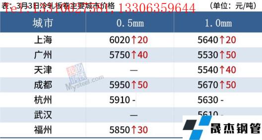 冷軋板卷:3月3日,全國24個主要城市1.0mm冷卷均價5625元/噸,較上個交易日上漲23元/噸。據(jù)局部市場反饋,3日市場整體出貨情況較上一交易日略有好轉(zhuǎn),午后市場商家有補(bǔ)漲;庫存方便看,3日本網(wǎng)監(jiān)測26個城市庫存,本周冷軋板卷社會庫存142.43萬噸,周環(huán)比減少1.84萬噸,月環(huán)比增加8.73萬噸,年同比(公歷)增加18.10萬噸,年同比(農(nóng)歷)增加18.82萬噸。從上海、廣東地區(qū)了解,節(jié)后庫存壓力較大,隨著下游行業(yè)需求逐步釋放,近日庫存壓力有所緩解,但同比去年還是要高出不少。整合來看,預(yù)計4日全國冷軋價格多窄幅震蕩運(yùn)行,重心或有上移。