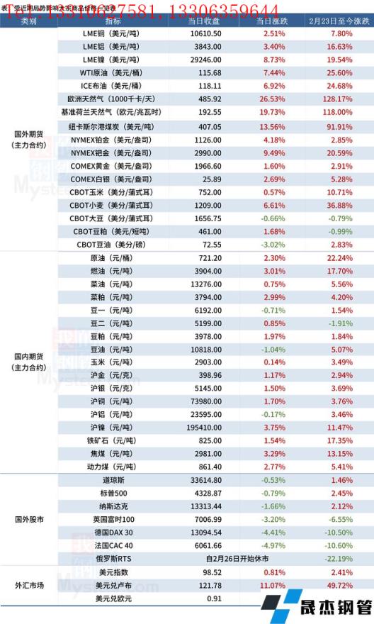 近期,受國(guó)際局勢(shì)影響,全球金融及大宗商品市場(chǎng)出現(xiàn)較大波動(dòng)。3月4日,歐美股市經(jīng)歷“黑色星期五”,國(guó)際油價(jià)、天然氣大幅上漲,油價(jià)本周波動(dòng)幅度創(chuàng)歷史新高。匯總情況如下: