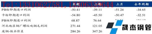 1.4進口鐵礦石利潤及無縫厚壁鋼管廠家利潤(單位:元/噸)