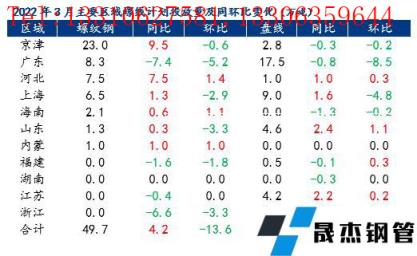 從投放區(qū)域來(lái)看,3月東北無(wú)縫厚壁鋼管廠家螺紋主要投放華北、盤線主要投放華東,區(qū)域選擇較以往變化不大;螺紋對(duì)華北、華南、華東的投放量分別為30.5萬(wàn)噸、10.萬(wàn)噸和7.8萬(wàn)噸,盤線對(duì)華東、華南、華北的投放量分別為22.3萬(wàn)噸、17.5萬(wàn)噸和3.8萬(wàn)噸。