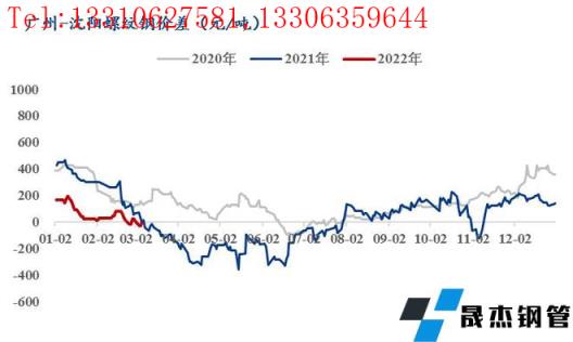 2月螺紋北京-沈陽(yáng)月均價(jià)差+42元/噸,廣州-沈陽(yáng)月均價(jià)差+33元/噸,上海-沈陽(yáng)月均價(jià)差-89元/噸,濟(jì)南-沈陽(yáng)月均價(jià)差+40元/噸。雖然本地尚未全面啟動(dòng),但本地?zé)o縫厚壁鋼管廠家跟漲節(jié)奏較快,帶動(dòng)市場(chǎng)報(bào)價(jià)整體上漲,即東北價(jià)格繼續(xù)處在較高水平,南北無(wú)合適的價(jià)差已經(jīng)成為常態(tài)。