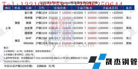 免責(zé)聲明:本網(wǎng)站(山東聊城晟杰無縫鋼管廠www.aremjf.cn)刊載的“鎳價極端行情之下 下游壓力凸顯”等均源于網(wǎng)絡(luò),版權(quán)歸原作者所有,且僅代表原作者觀點,本文所載信息僅供參考。轉(zhuǎn)載僅為學(xué)習(xí)與交流之目的,如無意中侵犯您的合法權(quán)益,請及時聯(lián)系刪除。本網(wǎng)站刊登此篇文章并不意味著本站贊同其觀點或證實其內(nèi)容的真實性,我們不對其科學(xué)性、嚴(yán)肅性等作任何形式的保證。如果侵犯了您的版權(quán),請盡快聯(lián)系我們予以撤銷,謝謝合作!