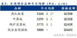 今日全國部分品種均價(jià)有所回落,整體跌幅為2~21元/噸。