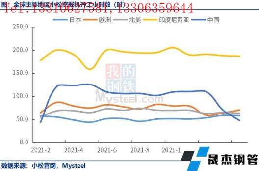從全球其他地區(qū)來看,2月日本、歐洲、北美、印度尼西亞的小松挖掘機開工小時數(shù)均同比正增長。具體數(shù)據(jù)如下: