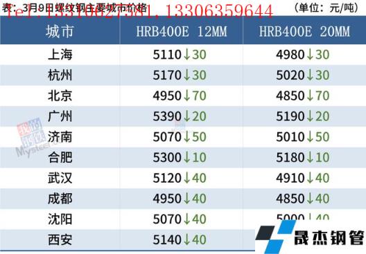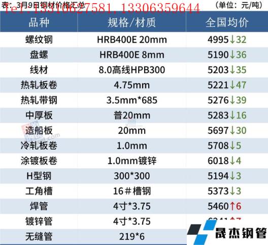 建筑厚壁無縫鋼管:3月9日,全國31個(gè)主要城市20mm三級(jí)抗震螺紋鋼均價(jià)4995元/噸,較上個(gè)交易日跌32元/噸。綜合來看,需求方面,目前下游工程項(xiàng)目資金情況尚未有明顯好轉(zhuǎn),采購剛需為主,市場投機(jī)情緒降溫后,整體成交表現(xiàn)較為一般。而期貨市場的波動(dòng)影響市場心態(tài),因此預(yù)計(jì)10日國內(nèi)建筑厚壁無縫鋼管價(jià)格將繼續(xù)弱勢震蕩運(yùn)行。
