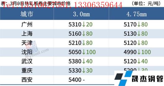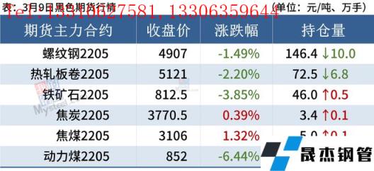 熱軋板卷:3月9日,全國24個(gè)主要城市4.75mm熱軋板卷均價(jià)5221元/噸,較上個(gè)交易日下跌47元/噸。黑色商品期貨市場震蕩下跌,早盤走弱,現(xiàn)貨報(bào)價(jià)小幅下跌,成交表現(xiàn)不佳,午后期卷繼續(xù)走低,下游采購量收縮,全天成交較差,商家套現(xiàn)意愿增強(qiáng)。綜合來看,前期熱卷期現(xiàn)貨價(jià)格大幅拉漲,市場恐高情緒濃厚,高價(jià)位成交受阻,需求釋放不及預(yù)期,商家欲獲利套現(xiàn),價(jià)格出現(xiàn)一定程度回落,但高成本和低庫存以及國內(nèi)外價(jià)差都將抑制鋼價(jià)大幅下跌。綜合來看,預(yù)計(jì)10日熱軋板卷價(jià)格或震蕩偏弱為主。