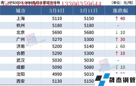 截至3月11日,全國(guó)主要城市20mm三級(jí)抗震螺紋鋼均價(jià)4952元/噸,周環(huán)比上漲6元/噸;8.0mmHPB300高線(xiàn)均價(jià)5164元/噸,周環(huán)比上漲3元/噸。