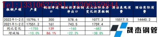 綜上所述,1-2月粗鋼實(shí)際消費(fèi)同比降幅僅為5%,明顯高于市場(chǎng)預(yù)期。但從后期供需預(yù)估表現(xiàn)來(lái)看,厚壁無(wú)縫鋼管復(fù)產(chǎn)節(jié)奏或高于需求釋放力度,進(jìn)而使得消費(fèi)承壓,價(jià)格上漲難度加大。
