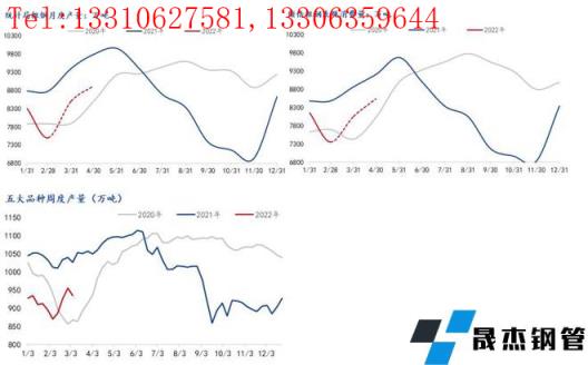 從目前供應恢復情況來說,伴隨兩會、采暖季結束,企業(yè)生產狀態(tài)逐步恢復。截至3月11日,調研五大品種厚壁無縫鋼管產量達到935萬噸,較春節(jié)后絕對低點870萬噸(2022年2月11日)提升65萬噸;調研247家無縫厚壁鋼管廠家高爐日均鐵水產量215萬噸,較春節(jié)后絕對低點203噸(2022年2月18日)提升12萬噸,可見粗鋼及厚壁無縫鋼管的供應情況有所保證。