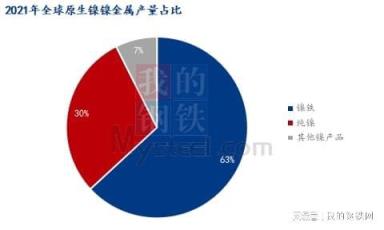 原生鎳中,63%為鎳鐵,鎳鐵中78%為鎳生鐵、22%為水淬鎳。鎳生鐵又可分為低、中、高鎳生鐵,對應(yīng)鎳含量為1.5%-1.8%、4%-8%、8%-15%。