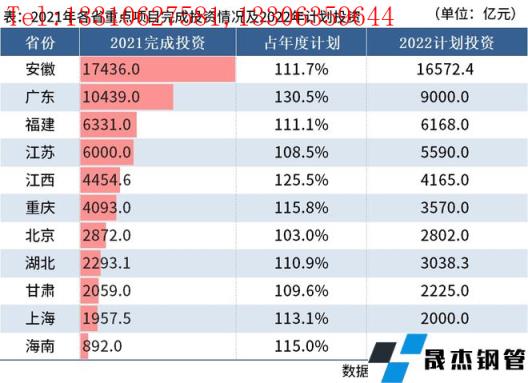據(jù)不完全統(tǒng)計(jì),截至3月16日,已有11個省份公布其2021年重點(diǎn)項(xiàng)目完成投資情況。根據(jù)地方政府公開資料顯示,11個省份2021年重點(diǎn)項(xiàng)目共完成投資近5.9萬億元,且均超過當(dāng)年計(jì)劃目標(biāo)。2022年,上述11省份共計(jì)劃投資近5.6萬億元,其中安徽省計(jì)劃投資超1.65萬億,排名第一。