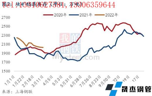 去年8-11月焦炭價格經(jīng)歷大幅度上漲之后,為控制成本無縫厚壁鋼管廠家開始下調(diào)塊礦的入爐配比,導致遠期塊礦溢價最低跌至僅0.0265美元/干噸度,從而性價比凸顯,之后進入四季度隨著采暖季的進行,燒結限產(chǎn)加嚴,導致燒結礦供應不足,而此時球團溢價又尚處于高位,因此無縫厚壁鋼管廠家在二者選擇中,最終使用性價比較高的塊礦用以彌補燒結礦不足的影響,帶動塊礦需求好轉,塊礦溢價開始走高;之后塊礦配比雖有下調(diào),但其配比仍處于歷史中高位水平,因此今年1至3月份塊礦溢價仍持續(xù)上漲。