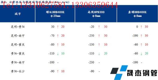 【今日價格】從云貴主要城市建筑厚壁無縫鋼管價格來看,今日云南建筑厚壁無縫鋼管市場價格上漲40-50元/噸,貴州建筑厚壁無縫鋼管市場價格上漲20-30元/噸。