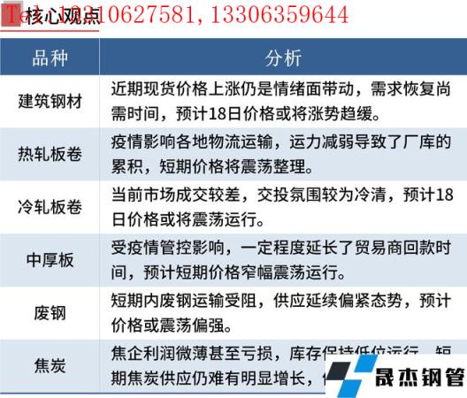 建筑厚壁無(wú)縫鋼管:3月17日,全國(guó)31個(gè)主要城市20mm三級(jí)抗震螺紋鋼均價(jià)4940元/噸,較上個(gè)交易日上漲32元/噸。本周受山西無(wú)縫厚壁鋼管廠家復(fù)產(chǎn)影響,產(chǎn)量繼續(xù)小幅回升,社會(huì)庫(kù)存繼續(xù)下降,但廠庫(kù)受疫情影響有所增加,本周表觀消費(fèi)出現(xiàn)回落。短期來(lái)看,近期現(xiàn)貨價(jià)格上漲仍是情緒面帶動(dòng),需求恢復(fù)尚需時(shí)間,短期還需要關(guān)注疫情對(duì)于需求復(fù)蘇影響。綜合來(lái)看,預(yù)計(jì)18日國(guó)內(nèi)建筑厚壁無(wú)縫鋼管價(jià)格或?qū)q勢(shì)趨緩為主。