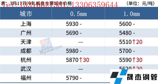 冷軋板卷:3月17日,全國(guó)24個(gè)主要城市1.0mm冷卷均價(jià)5635元/噸,較上個(gè)交易日上漲9元/噸。受疫情影響部分中高風(fēng)險(xiǎn)地區(qū)車(chē)輛貨物實(shí)行臨時(shí)管控,導(dǎo)致資源不能送到終端客戶,局部區(qū)域出現(xiàn)降庫(kù)放緩,甚至出現(xiàn)庫(kù)存回升的風(fēng)險(xiǎn);當(dāng)前市場(chǎng)成交較差,交投氛圍較為冷清,下游客戶以按需采購(gòu)為主,需求持續(xù)疲軟。庫(kù)存方面,據(jù)不完全統(tǒng)計(jì),現(xiàn)冷軋無(wú)縫厚壁鋼管廠家?guī)齑?3.94萬(wàn)噸,周環(huán)比減少0.63萬(wàn)噸,社會(huì)庫(kù)存143.12萬(wàn)噸,周環(huán)比減少0.28萬(wàn)噸,周消費(fèi)量83.12萬(wàn)噸,環(huán)比增加2.90萬(wàn)噸。綜合來(lái)看,故預(yù)計(jì)18日國(guó)內(nèi)冷軋板卷價(jià)格或?qū)⒄鹗庍\(yùn)行。