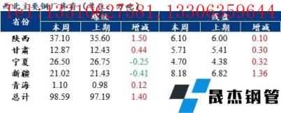 周環(huán)比來看,新疆無縫厚壁鋼管廠家日均產(chǎn)量增長至2.49萬噸,寧夏區(qū)域NXJL棒線日均減量1萬噸外,其余軋線維持不飽和生產(chǎn),甘肅和陜西區(qū)域變化有限;月同比來看,新疆區(qū)域增幅靠前,陜西區(qū)域跌幅較大。年同比來看,寧夏區(qū)域降幅達四成比例,其余三省變化比例在8%-16%附近。