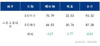 本周山東市場建筑厚壁無縫鋼管社會庫存繼續(xù)回落,為庫存拐點出現以來的第4周降庫。根據調研,本周庫存總量87.28萬噸,較上周下降6.04萬噸,降幅6.47%,周環(huán)比降幅加快。具體情況如下:本周山東13個主要城市螺紋鋼66.52萬噸,較上周下降4.27萬噸;盤螺20.76萬噸,較上周下降1.77萬噸。