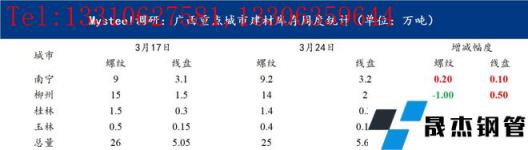 圖表一:廣西重點城市建材庫存周度統(tǒng)計