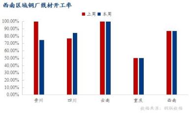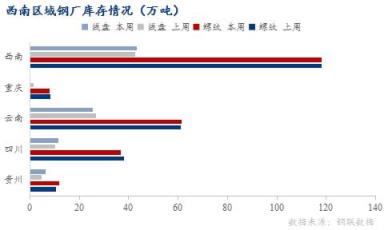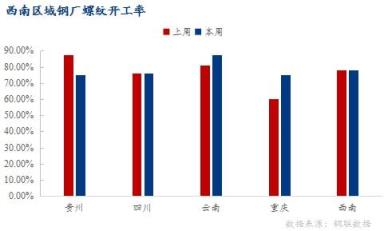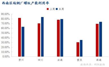 重慶區(qū)域:本周重慶區(qū)域螺紋鋼生產(chǎn)情況較上周無明顯變化,螺紋鋼產(chǎn)能利用率35.51%,環(huán)比增加4.67%;開工率75%,環(huán)比增加15%;周產(chǎn)量3.8萬噸,環(huán)比增加0.5萬噸。