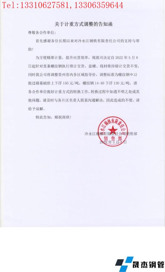 免責(zé)聲明:本網(wǎng)站(山東聊城晟杰無縫鋼管廠www.aremjf.cn)刊載的“冷水江鋼鐵有限責(zé)任公司關(guān)于對貴州區(qū)域計重方式調(diào)整的告知函”等均源于網(wǎng)絡(luò),版權(quán)歸原作者所有,且僅代表原作者觀點(diǎn),本文所載信息僅供參考。轉(zhuǎn)載僅為學(xué)習(xí)與交流之目的,如無意中侵犯您的合法權(quán)益,請及時聯(lián)系刪除。本網(wǎng)站刊登此篇文章并不意味著本站贊同其觀點(diǎn)或證實其內(nèi)容的真實性,我們不對其科學(xué)性、嚴(yán)肅性等作任何形式的保證。如果侵犯了您的版權(quán),請盡快聯(lián)系我們予以撤銷,謝謝合作!