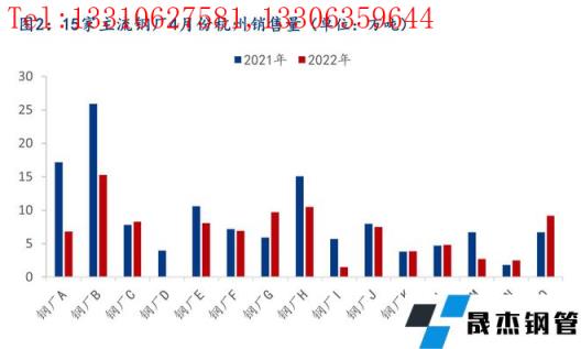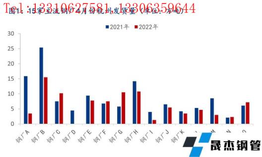 2、15家主導(dǎo)無縫厚壁鋼管廠家4月在杭銷售量為97.7萬噸,較發(fā)貨量相比增加4.4萬噸。清明小長假過后,杭州市場下游需求不斷釋放,上半個月碼頭出庫量逐步改善,不斷朝去年同期水平靠近。但下半個月受杭州疫情影響,部分區(qū)域工地停工、碼頭停止作業(yè),整體需求下滑明顯,全月需求依然低于市場預(yù)期水平。