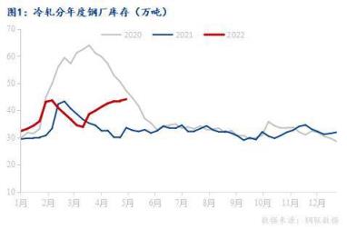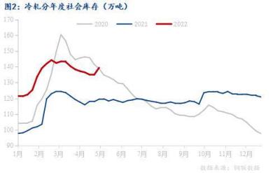 截止5月4日,監(jiān)測(cè)的26個(gè)城市庫(kù)存,冷軋板卷社會(huì)庫(kù)存為139.41萬(wàn)噸。社會(huì)庫(kù)存雖未到達(dá)年內(nèi)的峰值,但也同樣處于相對(duì)高位。年同比增加19.97萬(wàn)噸,同比數(shù)據(jù)同樣驚人。主要是汽車、家電等制造業(yè),在疫情下產(chǎn)量紛紛出現(xiàn)下滑,終端用鋼量明顯縮量。但短期局部區(qū)域物流受疫情防控影響,廠庫(kù)無(wú)法向社庫(kù)端去進(jìn)行轉(zhuǎn)移,因此社庫(kù)的累積速度并不及廠庫(kù)。