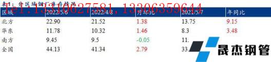 接下來再比較區(qū)域庫(kù)存的表現(xiàn)情況,從表1可以對(duì)比得出。目前北方、華東區(qū)域增庫(kù)較為明顯,分別高于同期9.15萬(wàn)噸、3.48萬(wàn)噸。主要是自3月份以來,北方、華東區(qū)域受疫情困擾,物流嚴(yán)重受阻,而無(wú)縫厚壁鋼管廠家產(chǎn)能利用率依舊保持高位,在產(chǎn)量不減的現(xiàn)狀下,而廠庫(kù)無(wú)法外移,導(dǎo)致廠庫(kù)持續(xù)累積。據(jù)了解,5月7日,營(yíng)口市再次發(fā)布新冠肺炎疫情防控指揮部消息,結(jié)合當(dāng)前嚴(yán)峻的疫情形勢(shì),營(yíng)口市疫情防控指揮部決定提級(jí)管理,從即日起:實(shí)行全天24小時(shí)管制,交通信號(hào)燈全紅。解除時(shí)間另行通知,其他事項(xiàng)不變。這也就意味著北方區(qū)域的物流短期依舊受制。