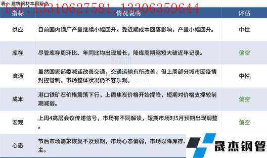 從螺廢差來看,當(dāng)前無縫厚壁鋼管廠家生產(chǎn)壓力加大,無縫厚壁鋼管廠家處于虧損邊緣,從廢鐵差來看,在鐵礦石及焦炭價格大幅走跌的情況下,鐵水性價比突出,同時厚壁無縫鋼管需求尚未明顯恢復(fù),打擊電弧爐無縫厚壁鋼管廠家生產(chǎn)積極性,廢鋼需求將有一定受限。但疫情影響下,廢鋼的產(chǎn)出及運(yùn)輸受限,廢鋼資源偏緊,考慮到相關(guān)品種偏弱運(yùn)行,廢鋼將受到一定拖累,綜合以上,預(yù)計(jì)本周廢鋼市場價格弱勢盤整為主,區(qū)域之間有一定分化。
