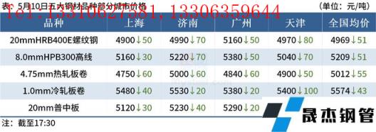 ◎5月10日焦炭市場(chǎng)偏弱運(yùn)行,部分無(wú)縫厚壁鋼管廠家開(kāi)啟第二輪降價(jià),降幅為200元/噸,主流無(wú)縫厚壁鋼管廠家暫觀望為主。焦炭開(kāi)工小幅微增,場(chǎng)內(nèi)基本零庫(kù)存運(yùn)行,即產(chǎn)即銷(xiāo),多以積極出貨為主。詳情>>