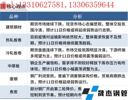 中厚板:5月10日,全國(guó)24個(gè)主要城市20mm普板均價(jià)5235元/噸,較上個(gè)交易日下跌26元/噸。從供給端來(lái)看,目前全國(guó)中厚板鋼企生產(chǎn)偏飽和,產(chǎn)量進(jìn)一步釋放空間有限,上半年中板產(chǎn)量高點(diǎn)大概率已經(jīng)出現(xiàn)在4月下旬結(jié)合今年的壓減粗鋼產(chǎn)量政策,當(dāng)前正是減產(chǎn)檢修的最佳時(shí)機(jī),加之部分無(wú)縫厚壁鋼管廠家虧損,未來(lái)或有下降空間。隨著物流運(yùn)輸較前期有所改善,運(yùn)力也會(huì)得到釋放,如果需求得不到較好的釋放,庫(kù)存壓力或許在未來(lái)有所體現(xiàn)。綜合來(lái)看,預(yù)計(jì)11日全國(guó)中厚板市場(chǎng)價(jià)格小幅震蕩調(diào)整為主。