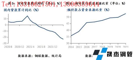 2020年8月,監(jiān)管層設(shè)置“三道紅線”的監(jiān)管指標(biāo),對(duì)房企進(jìn)行分檔管理,限制其有息負(fù)債擴(kuò)張速度;2021年1月,央行、銀保監(jiān)會(huì)建立房地產(chǎn)貸款集中度管理制度,對(duì)銀行業(yè)金融進(jìn)行管理制度,限制銀行資金過度流入地產(chǎn)行業(yè)。三道紅線及貸款集中制,限制了房地產(chǎn)企業(yè)表內(nèi)融資能力,這兩個(gè)政策在2022年2月開始對(duì)地產(chǎn)市場(chǎng)產(chǎn)生沖擊,國內(nèi)貸款同比自14.4%的高位持續(xù)回落,延續(xù)至今。至此,房地產(chǎn)企業(yè)的表外融資渠道、表內(nèi)融資渠道都有較大限制,房地產(chǎn)資金短缺問題成為重要的麻煩。但此階段,房地產(chǎn)企業(yè)尚未出現(xiàn)大的危機(jī),主要得益于房價(jià)上漲預(yù)期仍在,地產(chǎn)銷售偏好,預(yù)售資金來源尚能支撐地產(chǎn)企業(yè)運(yùn)行。