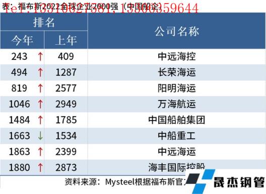 免責(zé)聲明:本網(wǎng)站(山東聊城晟杰無縫鋼管廠www.aremjf.cn)刊載的“:中國8家船企上榜福布斯2022全球企業(yè)2000強”等均源于網(wǎng)絡(luò),版權(quán)歸原作者所有,且僅代表原作者觀點,本文所載信息僅供參考。轉(zhuǎn)載僅為學(xué)習(xí)與交流之目的,如無意中侵犯您的合法權(quán)益,請及時聯(lián)系刪除。本網(wǎng)站刊登此篇文章并不意味著本站贊同其觀點或證實其內(nèi)容的真實性,我們不對其科學(xué)性、嚴(yán)肅性等作任何形式的保證。如果侵犯了您的版權(quán),請盡快聯(lián)系我們予以撤銷,謝謝合作!