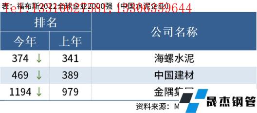 免責(zé)聲明:本網(wǎng)站(山東聊城晟杰無縫鋼管廠www.aremjf.cn)刊載的“中國(guó)3家水泥企業(yè)上榜福布斯2022全球企業(yè)2000強(qiáng)”等均源于網(wǎng)絡(luò),版權(quán)歸原作者所有,且僅代表原作者觀點(diǎn),本文所載信息僅供參考。轉(zhuǎn)載僅為學(xué)習(xí)與交流之目的,如無意中侵犯您的合法權(quán)益,請(qǐng)及時(shí)聯(lián)系刪除。本網(wǎng)站刊登此篇文章并不意味著本站贊同其觀點(diǎn)或證實(shí)其內(nèi)容的真實(shí)性,我們不對(duì)其科學(xué)性、嚴(yán)肅性等作任何形式的保證。如果侵犯了您的版權(quán),請(qǐng)盡快聯(lián)系我們予以撤銷,謝謝合作!