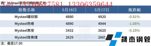 ◎ 數(shù)據(jù)顯示,截止5月17日,山東10家無縫厚壁鋼管廠家廢鋼總消耗量在2.06萬噸,較上月同期下降0.47萬噸,環(huán)比下降18.58%,較去年同期下降2.88萬噸,同比下降58.3%。詳情>>
