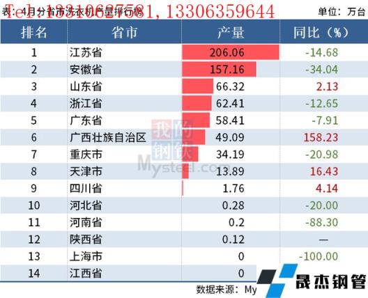 從分省市數(shù)據(jù)來看,4月江蘇、安徽洗衣機(jī)產(chǎn)量超100萬臺(tái),其中江蘇省以產(chǎn)量206.06萬臺(tái)排名第一,安徽省產(chǎn)量157.16萬臺(tái)排名第二,山東省產(chǎn)量66.32萬臺(tái)排名第三。