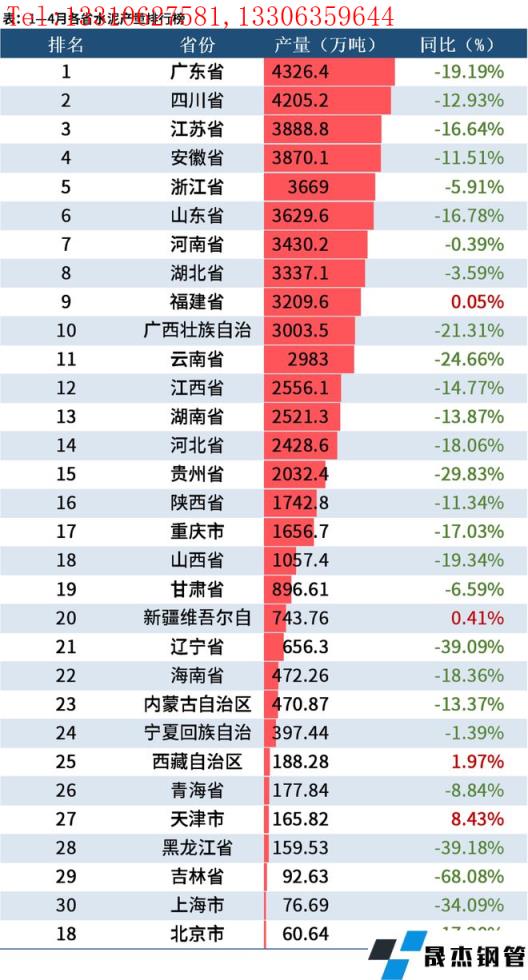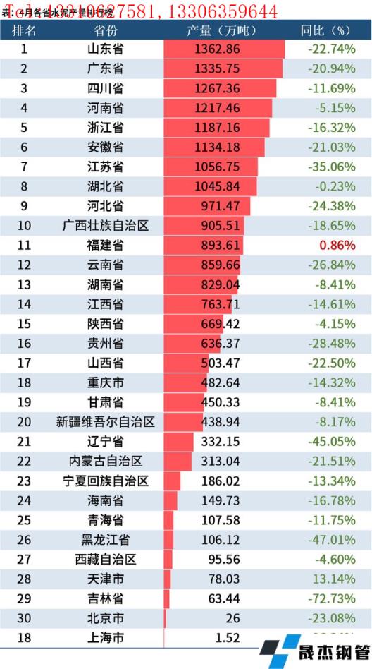 免責(zé)聲明:本網(wǎng)站(山東聊城晟杰無縫鋼管廠www.aremjf.cn)刊載的“統(tǒng)計局:前4月全國分省市水泥產(chǎn)量出爐,粵川蘇皖降超10%”等均源于網(wǎng)絡(luò),版權(quán)歸原作者所有,且僅代表原作者觀點(diǎn),本文所載信息僅供參考。轉(zhuǎn)載僅為學(xué)習(xí)與交流之目的,如無意中侵犯您的合法權(quán)益,請及時聯(lián)系刪除。本網(wǎng)站刊登此篇文章并不意味著本站贊同其觀點(diǎn)或證實其內(nèi)容的真實性,我們不對其科學(xué)性、嚴(yán)肅性等作任何形式的保證。如果侵犯了您的版權(quán),請盡快聯(lián)系我們予以撤銷,謝謝合作!
