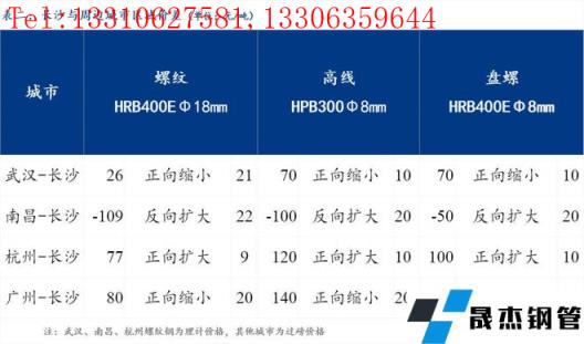 統(tǒng)一為理計單位后,武漢高于長沙26元/噸,南昌低于長沙109元/噸,杭州高于長沙77元/噸,廣州高于長沙80元/噸。