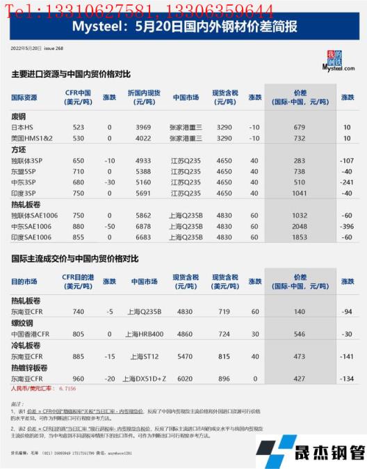 免責(zé)聲明:本網(wǎng)站(山東聊城晟杰無縫鋼管廠www.aremjf.cn)刊載的“2022年05月20日日?qǐng)?bào):國(guó)內(nèi)外鋼材_無縫鋼管價(jià)差匯總(2022.5.20)”等均源于網(wǎng)絡(luò),版權(quán)歸原作者所有,且僅代表原作者觀點(diǎn),本文所載信息僅供參考。轉(zhuǎn)載僅為學(xué)習(xí)與交流之目的,如無意中侵犯您的合法權(quán)益,請(qǐng)及時(shí)聯(lián)系刪除。本網(wǎng)站刊登此篇文章并不意味著本站贊同其觀點(diǎn)或證實(shí)其內(nèi)容的真實(shí)性,我們不對(duì)其科學(xué)性、嚴(yán)肅性等作任何形式的保證。如果侵犯了您的版權(quán),請(qǐng)盡快聯(lián)系我們予以撤銷,謝謝合作!