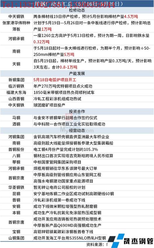 據(jù)不完全統(tǒng)計(jì),本周(5月16日-5月21日)有4家無(wú)縫厚壁鋼管廠家發(fā)布檢修計(jì)劃,具體如下: