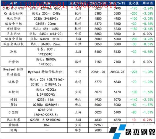 截止2022年5月20日,各原材料當(dāng)日即時價格以及價格周環(huán)比情況如下: