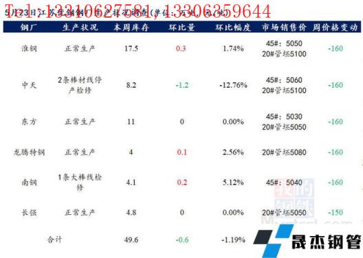 江蘇優(yōu)特?zé)o縫厚壁鋼管廠家棒材總庫(kù)存49.6萬(wàn)噸,較上周減少0.6萬(wàn)噸,環(huán)比降1.19%,較去年同期增加13.38萬(wàn)噸,同比增36.94%,目前省內(nèi)南鋼一條大棒線(xiàn)檢修,中天2條棒材線(xiàn)檢修,其余無(wú)縫厚壁鋼管廠家正常生產(chǎn)。