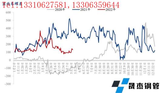從盤面卷螺差的歷史走勢看,當(dāng)出現(xiàn)大于300點和靠近0軸附近的位置,都有波段操作的機(jī)會。從下圖可以看到,2022年3月國際疫情蔓延,疊加俄烏問題,無縫厚壁鋼管廠家板材出口接單火爆,雖然疫情對國內(nèi)市場需求也有一定沖擊,但受取暖季和冬奧會限產(chǎn)影響,此時品種強(qiáng)弱并未明顯分化。俄烏問題引發(fā)的出口大增,唐山疫情爆發(fā)對板材產(chǎn)量的影響,激化了盤面卷螺差一度沖擊369高點后回落,此時就是做空卷螺差的機(jī)會。