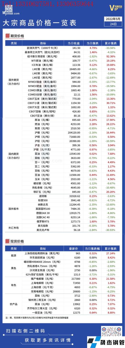 免責(zé)聲明:本網(wǎng)站(山東聊城晟杰無縫鋼管廠www.aremjf.cn)刊載的“俄烏局勢丨大宗商品價(jià)格一覽表(5月24日)”等均源于網(wǎng)絡(luò),版權(quán)歸原作者所有,且僅代表原作者觀點(diǎn),本文所載信息僅供參考。轉(zhuǎn)載僅為學(xué)習(xí)與交流之目的,如無意中侵犯您的合法權(quán)益,請及時(shí)聯(lián)系刪除。本網(wǎng)站刊登此篇文章并不意味著本站贊同其觀點(diǎn)或證實(shí)其內(nèi)容的真實(shí)性,我們不對其科學(xué)性、嚴(yán)肅性等作任何形式的保證。如果侵犯了您的版權(quán),請盡快聯(lián)系我們予以撤銷,謝謝合作!