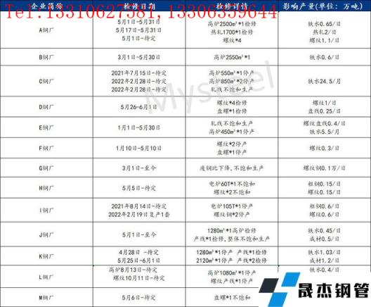 江蘇無縫厚壁鋼管廠家本周影響產(chǎn)量小幅減少,共計(jì)13家無縫厚壁鋼管廠家非正常生產(chǎn),較上周檢修停產(chǎn)鋼企數(shù)量持平,目前鐵水影響產(chǎn)量較上周增加0.6萬噸 /日,粗鋼影響產(chǎn)量較上周減少0.3萬噸 /日,成材影響產(chǎn)量減少增加1.55萬噸 /日。5月22日,印度政府出臺(tái)針對(duì)鋼鐵原料及產(chǎn)品的進(jìn)出口關(guān)稅調(diào)整政策。將焦煤、焦炭的進(jìn)口稅率由2.5%、5%降至0關(guān)稅;將寬度在600毫米以上的熱軋、冷軋及涂鍍板卷的出口關(guān)稅由0%提高至15%,不同鐵品位和品種的鐵礦石出口關(guān)稅上調(diào)至45%-50%不等。經(jīng)測(cè)算,該政策對(duì)鐵礦影響較大。同時(shí),我們注意到電爐螺紋利潤(rùn)-197元/噸,電爐無縫厚壁鋼管廠家持續(xù)虧損將觸發(fā)后期產(chǎn)量收縮,6月份多數(shù)無縫厚壁鋼管廠家將或面臨繼續(xù)減產(chǎn)的可能。具體情況及各主要品種日均影響產(chǎn)量(單位:萬噸)詳見下表:
