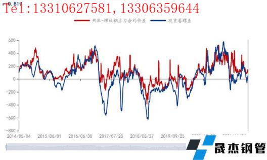 2、現(xiàn)貨市場卷螺差波動與鋼價整體走勢存在較為明顯的正相關(guān)性。